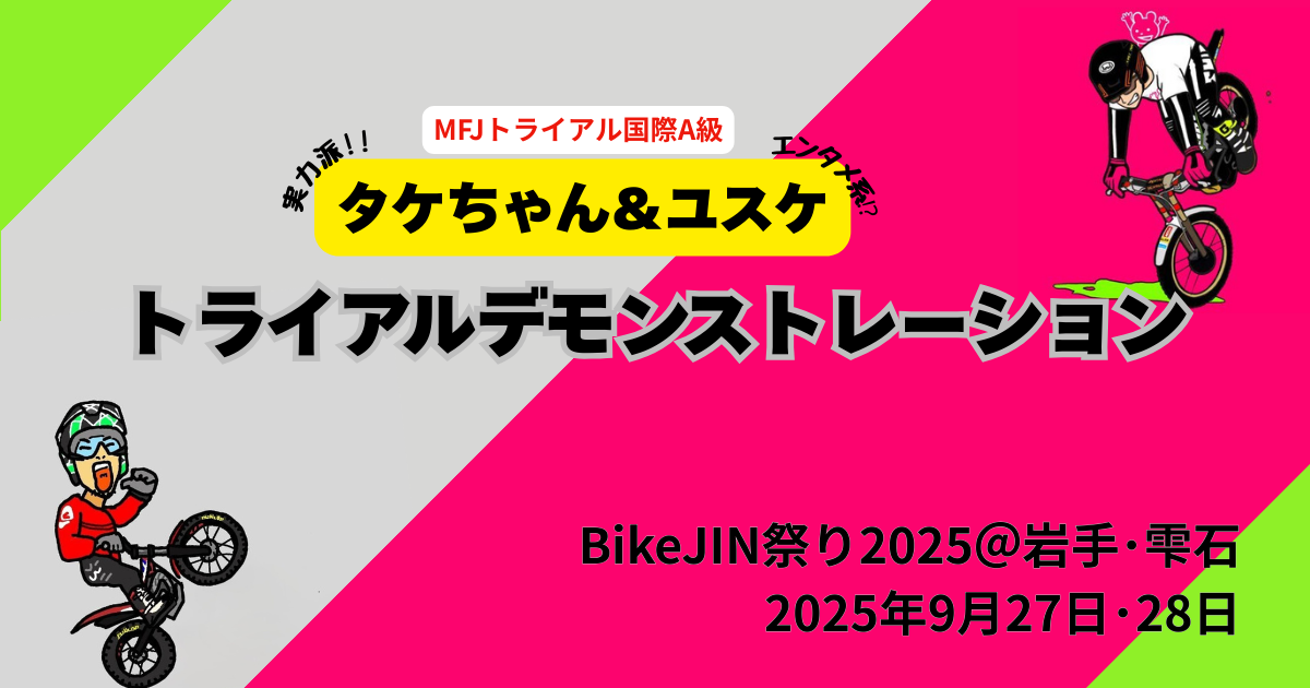 2025年9月27日(土)・28日(日)に岩手県雫石町で開催される「BikeJIN祭り2025@岩手・雫石」にて、トライアルデモンストレーションを実施します!